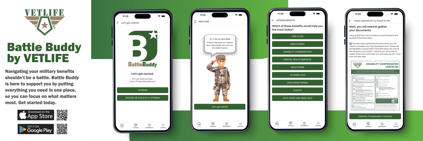 “We are thrilled to be partnering with VetLife- this allows us to amplify a message that matters: no one should face their battles alone. The Battle Buddy program is about connection, trust, and showing up for each other. Together with VetLife, we’re reaching more service members, spouses, and veterans with the support they deserve.” Download the app or contact us for more information!"